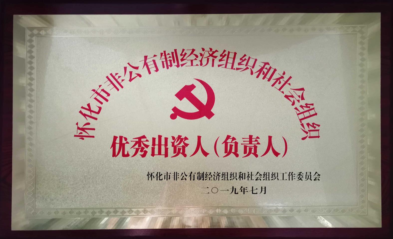 • 2019年7月被懷化市非公有制經濟組織和社會組織工作委員會評為“懷化市非公有制經濟組織和社會組織優秀出資人(負責人)”